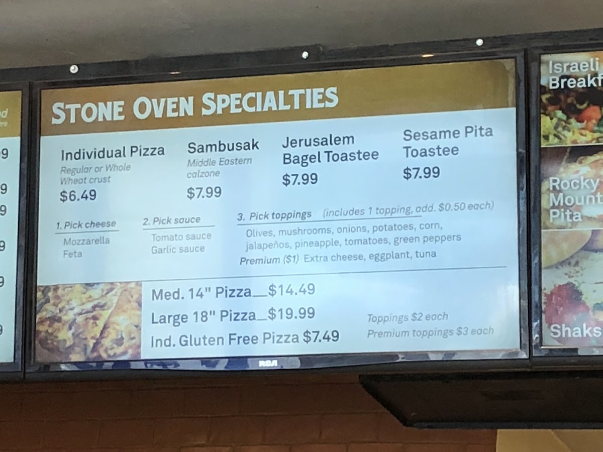 Two eggs baked onto a fresh sesame pita. Add cheese or vegetables for $0.50 each addition.